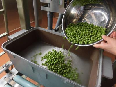 グリンピースを1つ1つていねいに見て、痛んで悪くなっているものがないかを確認します。