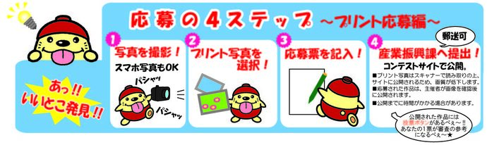 プリント写真を産業振興課へ提出する。(郵送可)