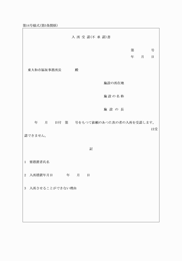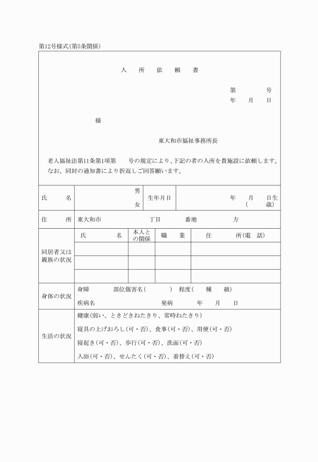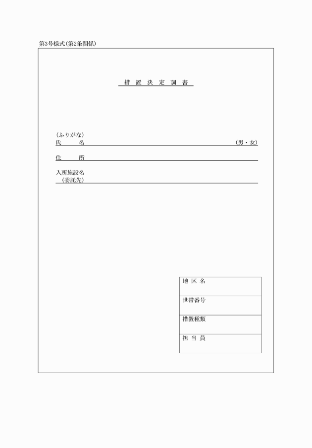 第3条 法第11条第1項の規定による措置を希望する者は、措置申請書(第8号様式)に診断書を添えて福祉事務所長に提出しなければならない。