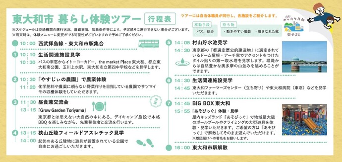 今回の暮らし体験ツアーでは、たくさんの方々に東大和市の魅力を感じていただくことができました。