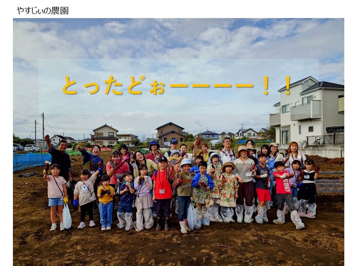 まずは、やすじぃの農園でのお芋ほり!さっそく市内のお友達(現住者のお子さん)と合流し、みんなで一緒にワイワイがやがや楽しく、大量のお芋をゲットしていました。